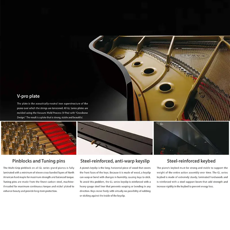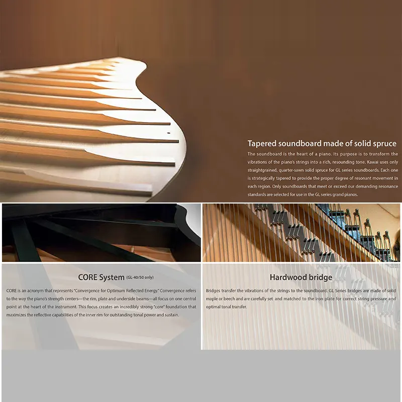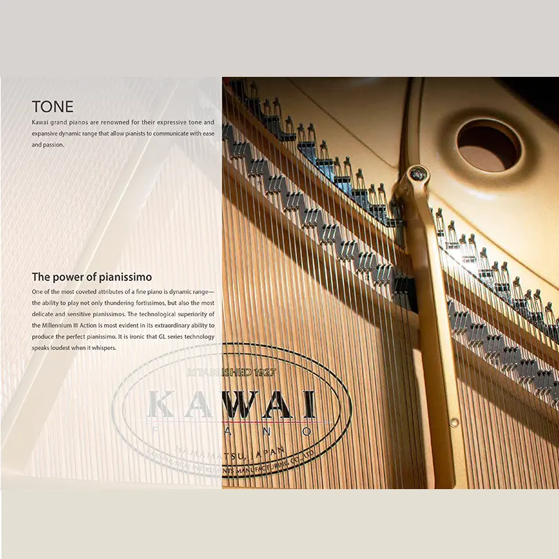 Kawai GL-40 adalah grand piano kelas atas yang dirancang untuk menghadirkan performa profesional dan pengalaman bermain optimal. Dengan mekanik Hammer Action yang presisi, GL-40 menghasilkan nada jernih, kaya, dan resonan. Finishing halus dan desain elegan membuatnya cocok sebagai alat musik sekaligus elemen estetika untuk rumah, studio, maupun panggung pertunjukan.
