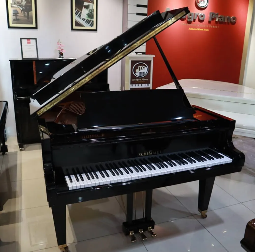 Schimmel K175 adalah grand piano tangan‑pertama buatan Jerman (seri “Konzert”) yang menggabungkan ukuran compact (± 175 cm) dengan konstruksi dan karakter suara yang meniru piano konser full‑size. Dengan sentuhan pengrajin Schimmel yang sangat teliti — setiap palu dianyam dan diatur dengan jarum voicing puluhan ribu kali — piano ini menghadirkan warna nada yang kaya dan ekspresif.
